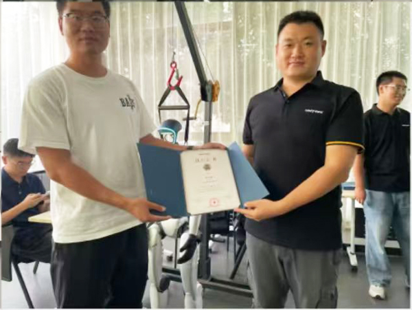 “课程既覆盖了机器人运动控制算法这类硬核理论,也包含了设备现场调试、多场景适配的实操技巧,完全贴合我们服务客户的实际需求。”罗工在谈及培训收获时表示,考核阶段需独立完成“人形机器人SDK动作开发”“四足机器人复杂地形适应性调试”两项实操任务,最终凭借扎实的技术积累与细致的操作,以优异成绩通过认证。此次世隆科技工程师获证,不仅是对个人技术能力的认可,更意味着世隆科技作为宇树科技重要合作伙伴,其整体技术服务水平达到宇树官方认证标准,实现“个人能力+企业服务”的双重突破。